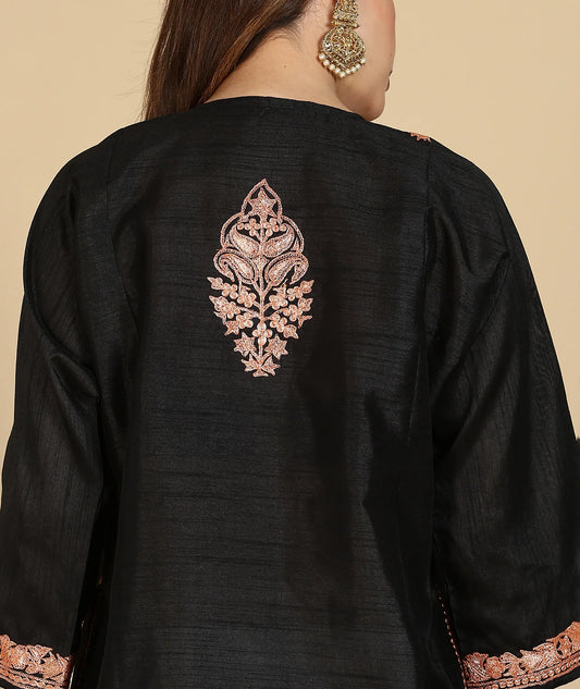 Tilla Embroidered Summer Pheran | Black Colored | Silk Pheran