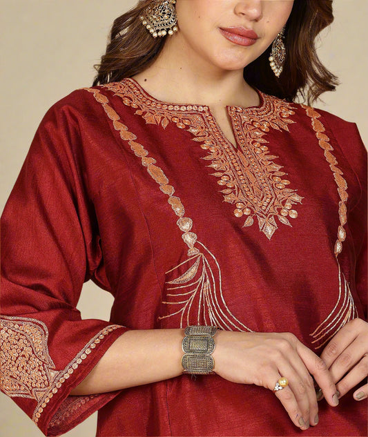 Till Embroidered Pheran | Maroon Colored | Premium Silk