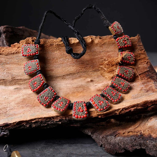 Handmade | Turquoise | Necklace, Bracelet and Earring Set | Red Colored Stones