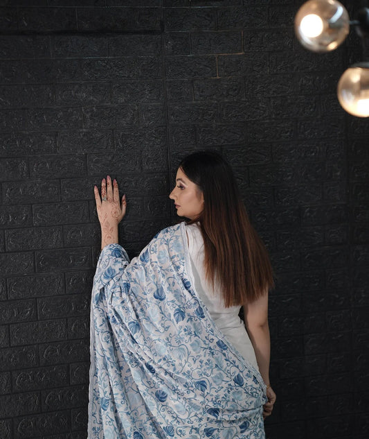 Aari Embroidered | Baby Blue | Georgette Saree