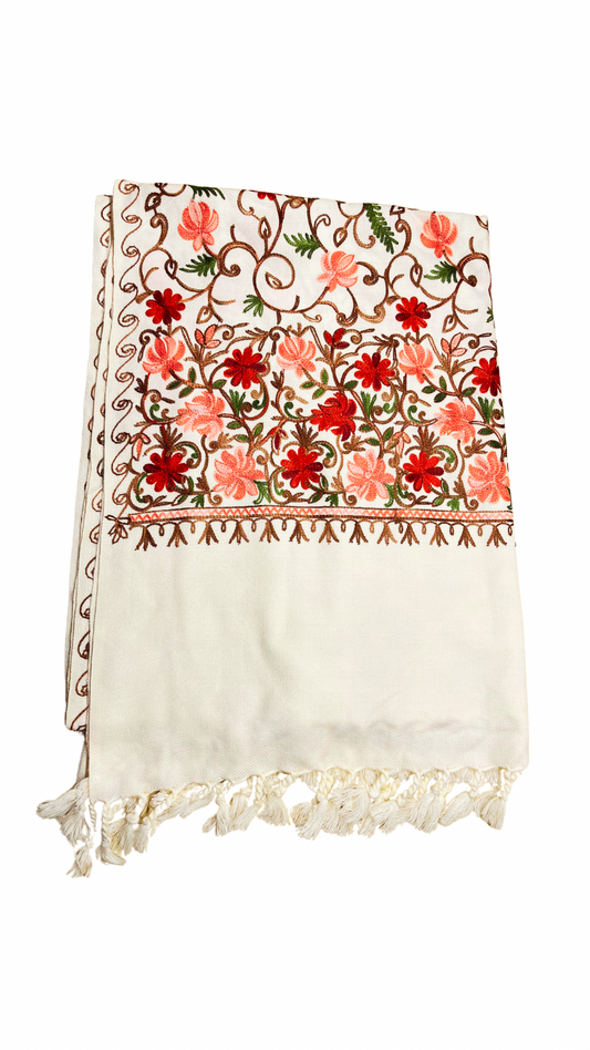 Kashmiri Embroidered White Shawl | White & Multicolor | Aari Embroidered
