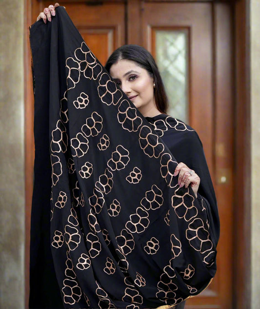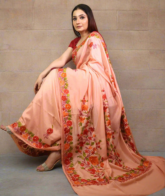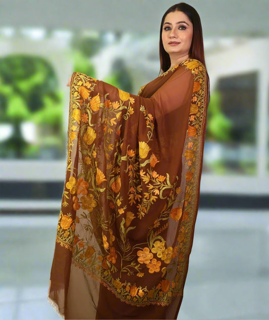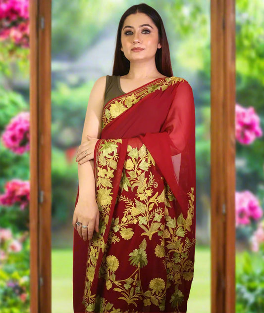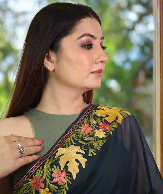 Chinar Aari Embroidered | Georgette Saree | Black Forest Multicolor