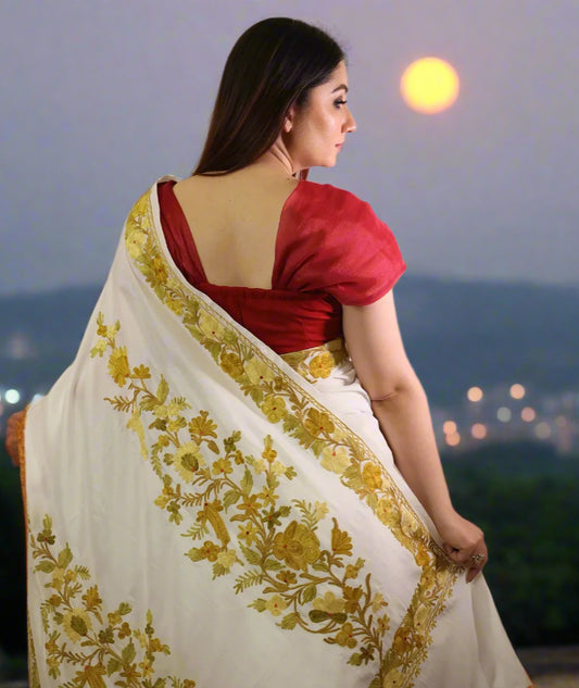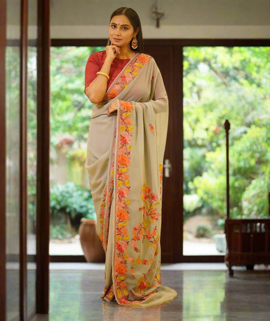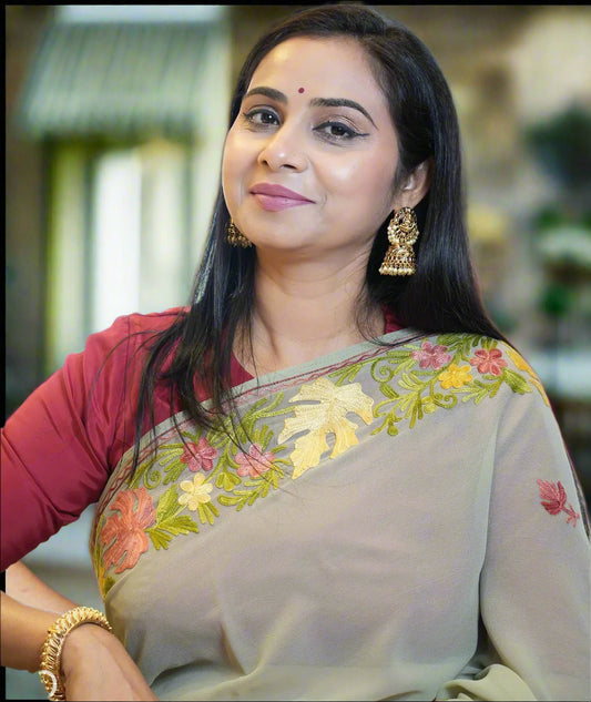 Chinar Aari Embroidered | Georgette Saree | Grey Colored