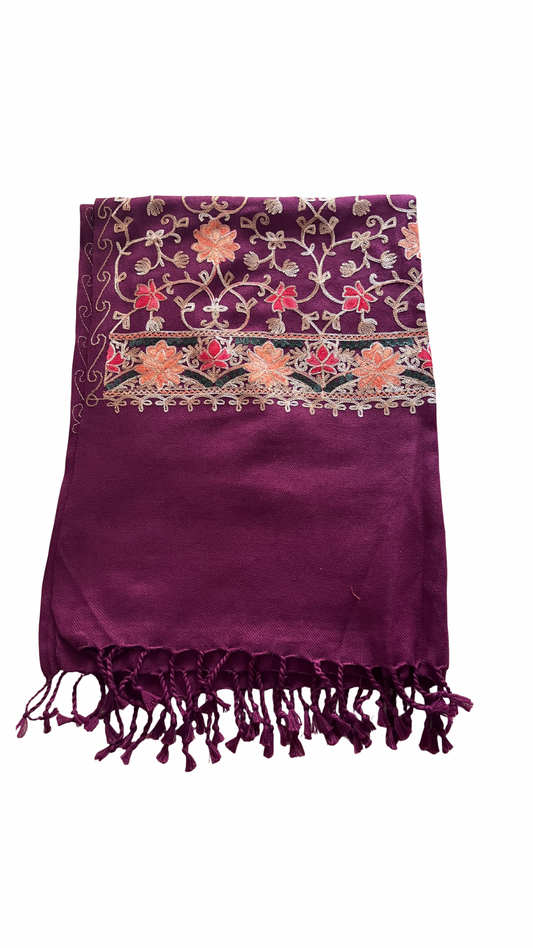 Dark Red Colored Embroidered Kashmiri Stole | Aari Embroidered