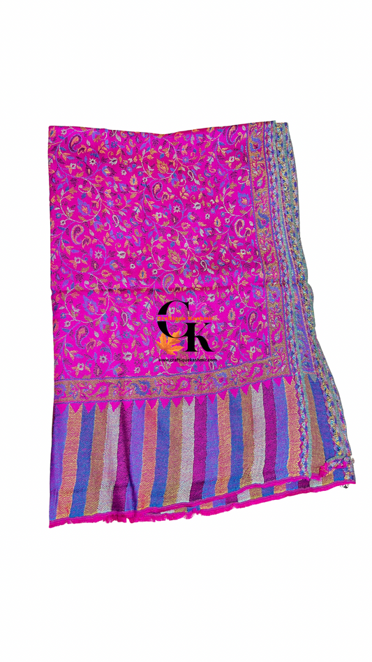Semi Pashmina Kani Stole | Pink Paisley Colored | Kashmiri Woven Stole