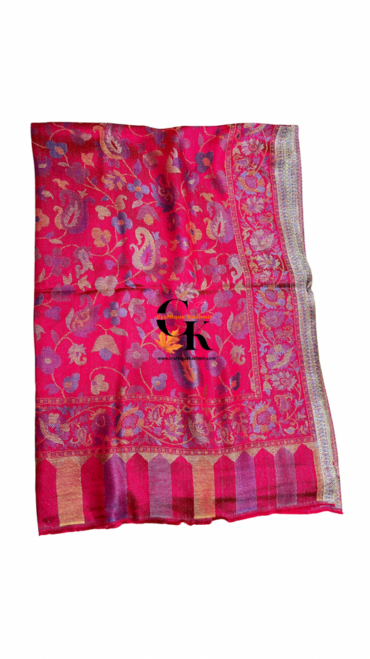 Premium Cashmelon Stole | Dark Pink Colored | Chinar Leaf Pattern