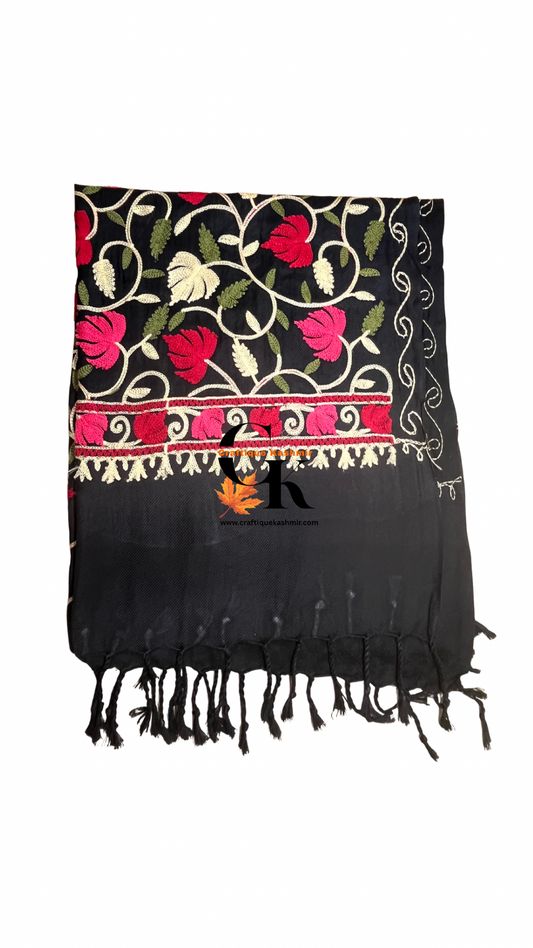 Black Multicolored Chinar Embroidered Ladies Shawl | Kashmiri Aari Embroidered