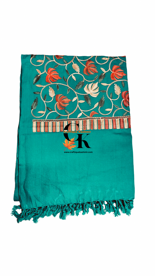 Parrot Green Multicolored Chinar Embroidered Ladies Shawl | Kashmiri Aari Embroidered