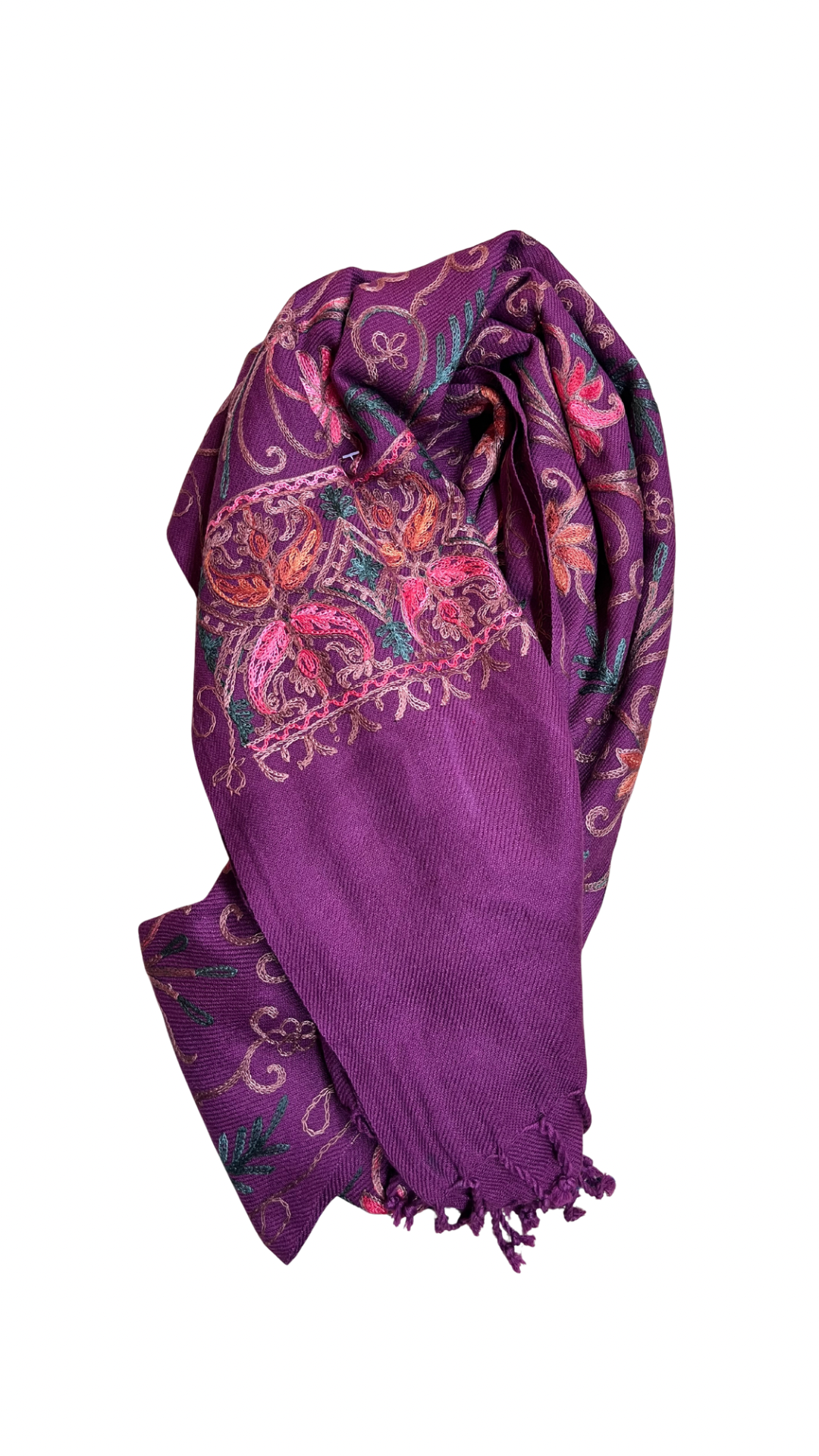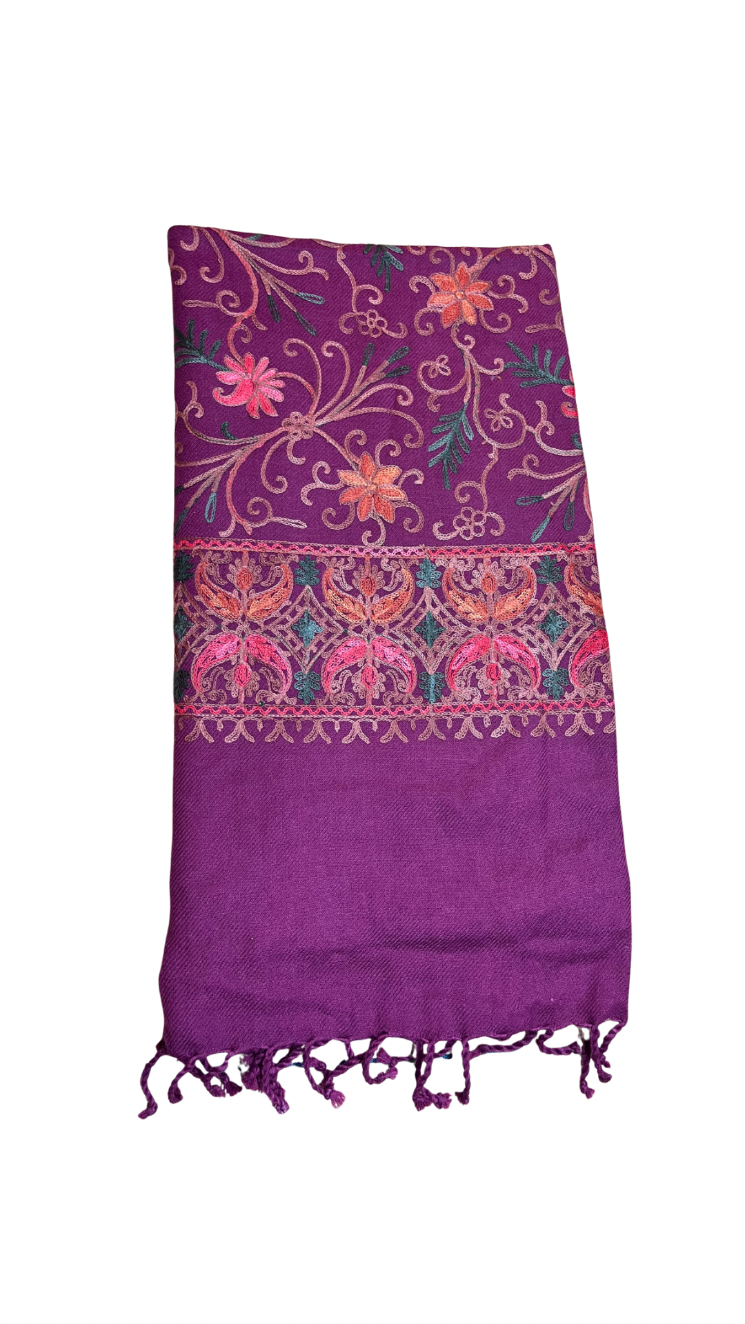Magenta Colored Embroidered Kashmiri Stole | Aari Embroidered